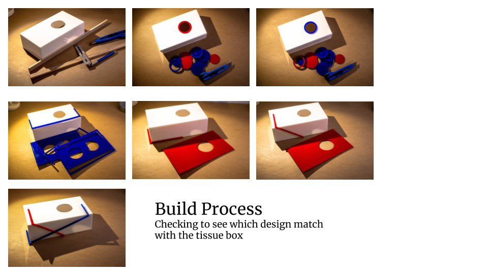 In my manufacturing processes class, I undertook the challenge of designing, prototyping, and manufacturing a tissue box, developing my skills in prototyping, 2D Rhino drawings, laser cutting, table saw operation, router use, bandsaw work, and Olfa knife precision. Beginning with a foam core prototype for visualization, I experimented with a minimalist design but found it too plain. To enhance the aesthetics, I opted for layered plywood, which not only added visual appeal but also conveyed a calming and earthy quality. Employing a laser cutter, I crafted the tissue box parts from white acrylic, complemented by a template for precise mitering to ensure strong, seamless joints. This project showcased how the combination of different materials, acrylic and plywood, can elevate design, even on a tight timeline.